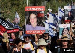 مادر رومی گونن، دختر ۲۳ ساله ربوده شده، که رادیوفردا در روزهای گذشته با مادربزرگ ایرانی او مصاحبه کرد، یکی از چهرههای شاخص در صف نخست راهپیمایان است و به نمایندگی از معترضان با رسانههای اسرائیلی و جهانی گفتوگو میکند.