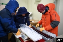 یوشینوری ایزوکا در محل کار روی هسته‌های یخی