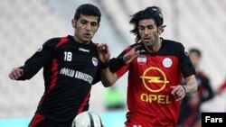 حسين بادامکی هم میتوانست دروازه فولاد را باز کند اما ضربه بغل پای او را علی سليمی مهار کرد.
