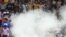 صندلیهای سالن مسابقه یکی پس از دیگری جدا شده و به داخل زمین پرتاب میشدند. زد و خورد بین تماشاگران هم برقرار بود، اما به وضوح نمیشد این اتفاقات را دید، چون نارنجکهای دستی چنان دود غلیظی در سالن به راه انداخته بودند که چشم چشم را نمیدید.